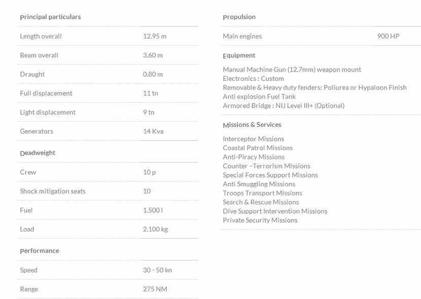 | 12.95米剛性船體攔截充氣艇 | |||