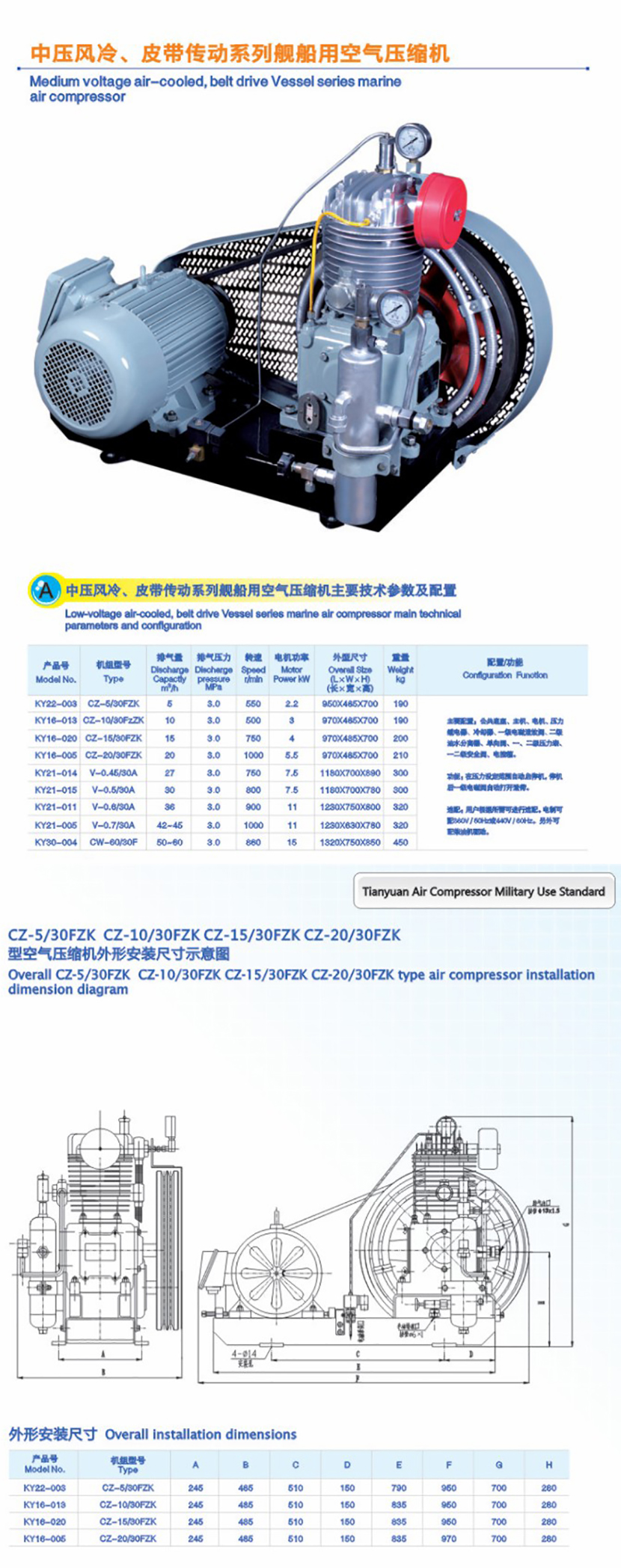 | 艦船用中壓風(fēng)冷&皮帶傳動空氣壓縮機 | |||