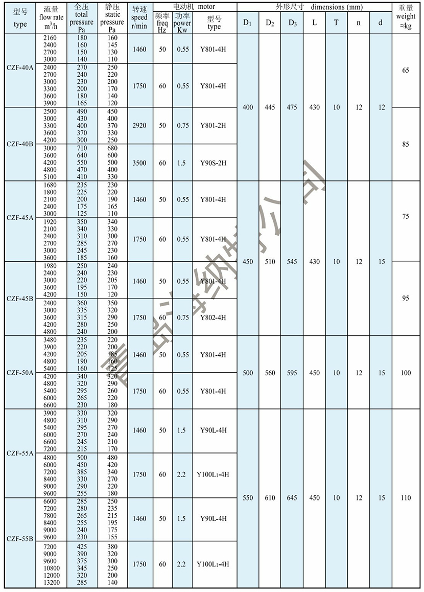 | 全壓: | 500Pa | 電機功率: | 2.2kW |