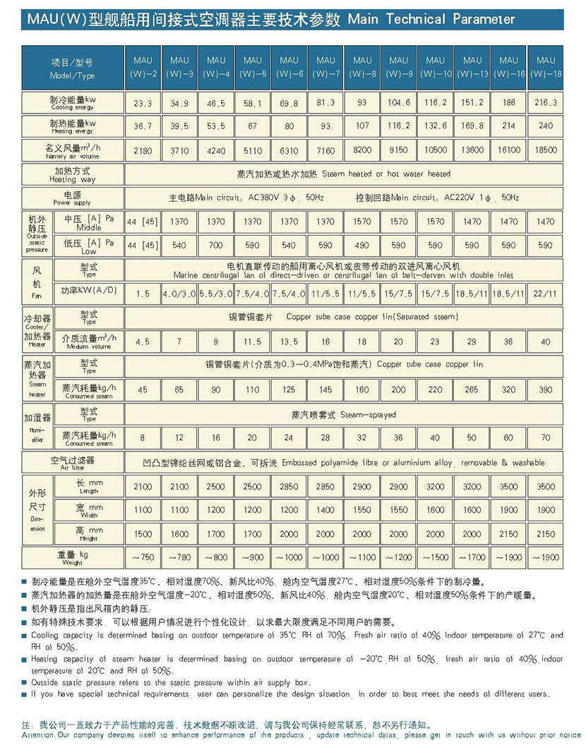 | 風機電機功率: | 4.0/3.0kW | 蒸汽加熱器型式: | 銅管銅套片(介質為0.3~0.4MPa飽和蒸汽) |