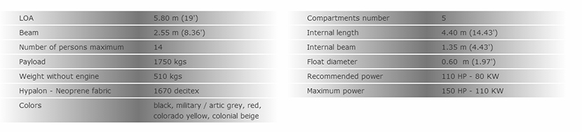 | 總長(zhǎng): | 5.8m | 發(fā)動(dòng)機(jī)功率: | 150hp |