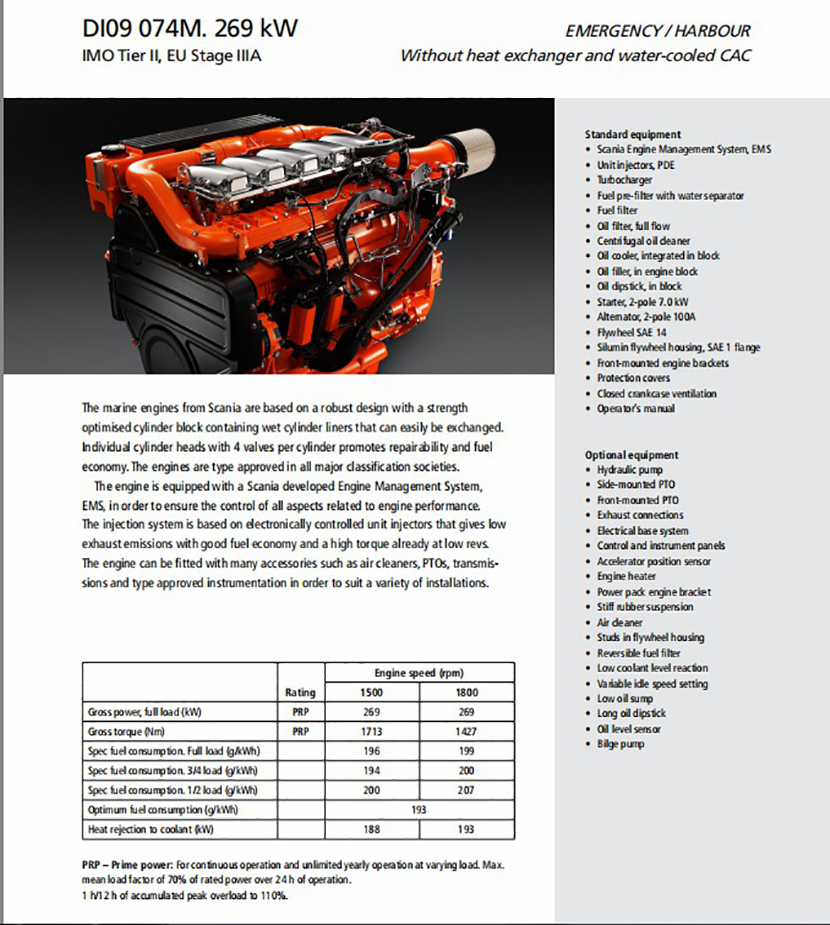 | 燃油消耗: | 193g/kWh | 缸數: | 4-stroke |