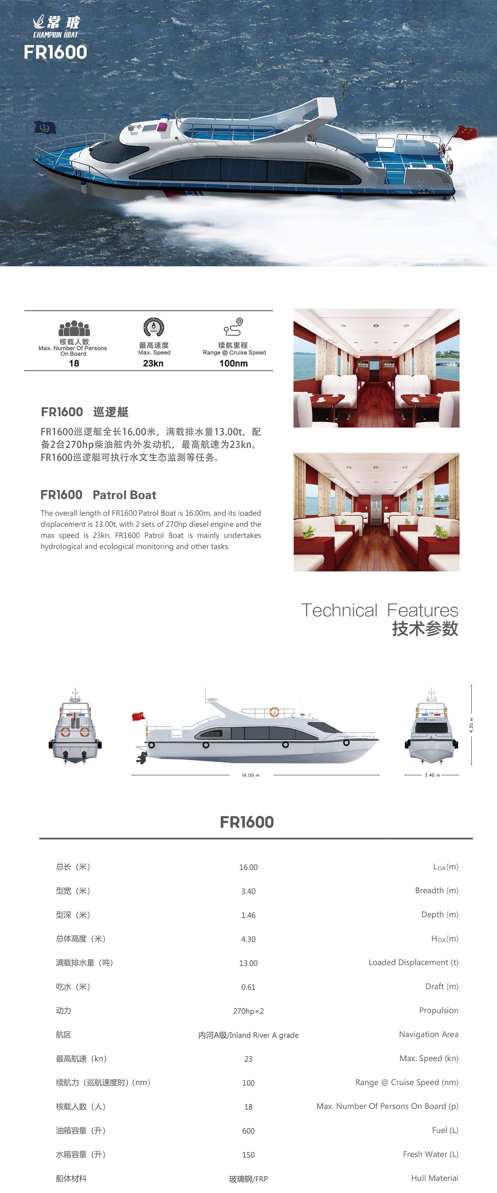 | 排水量: | 13.00t | 航區(qū): | 內(nèi)河A級/Inland River A Grade |